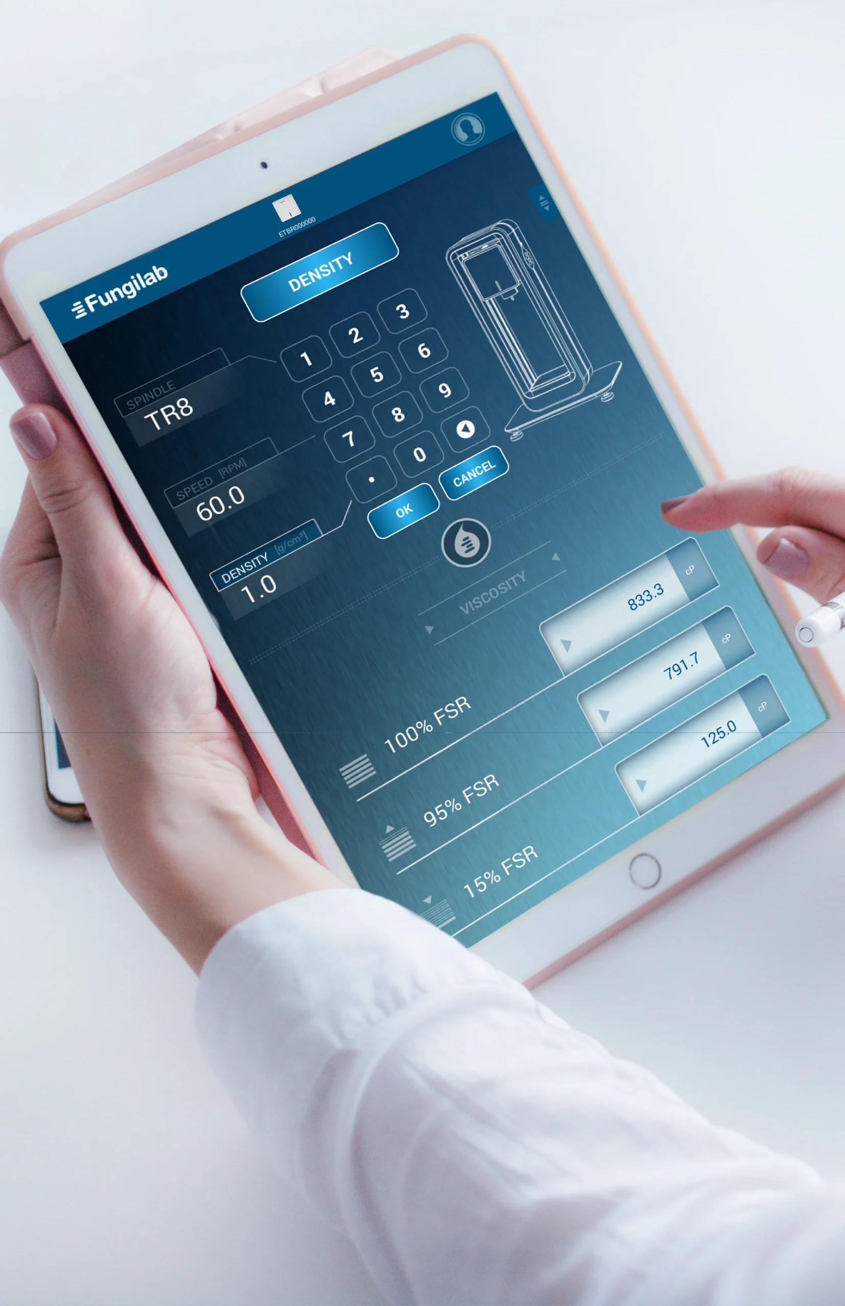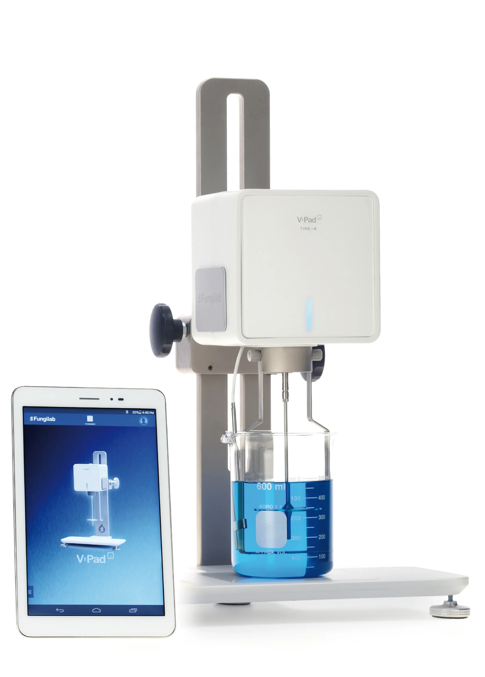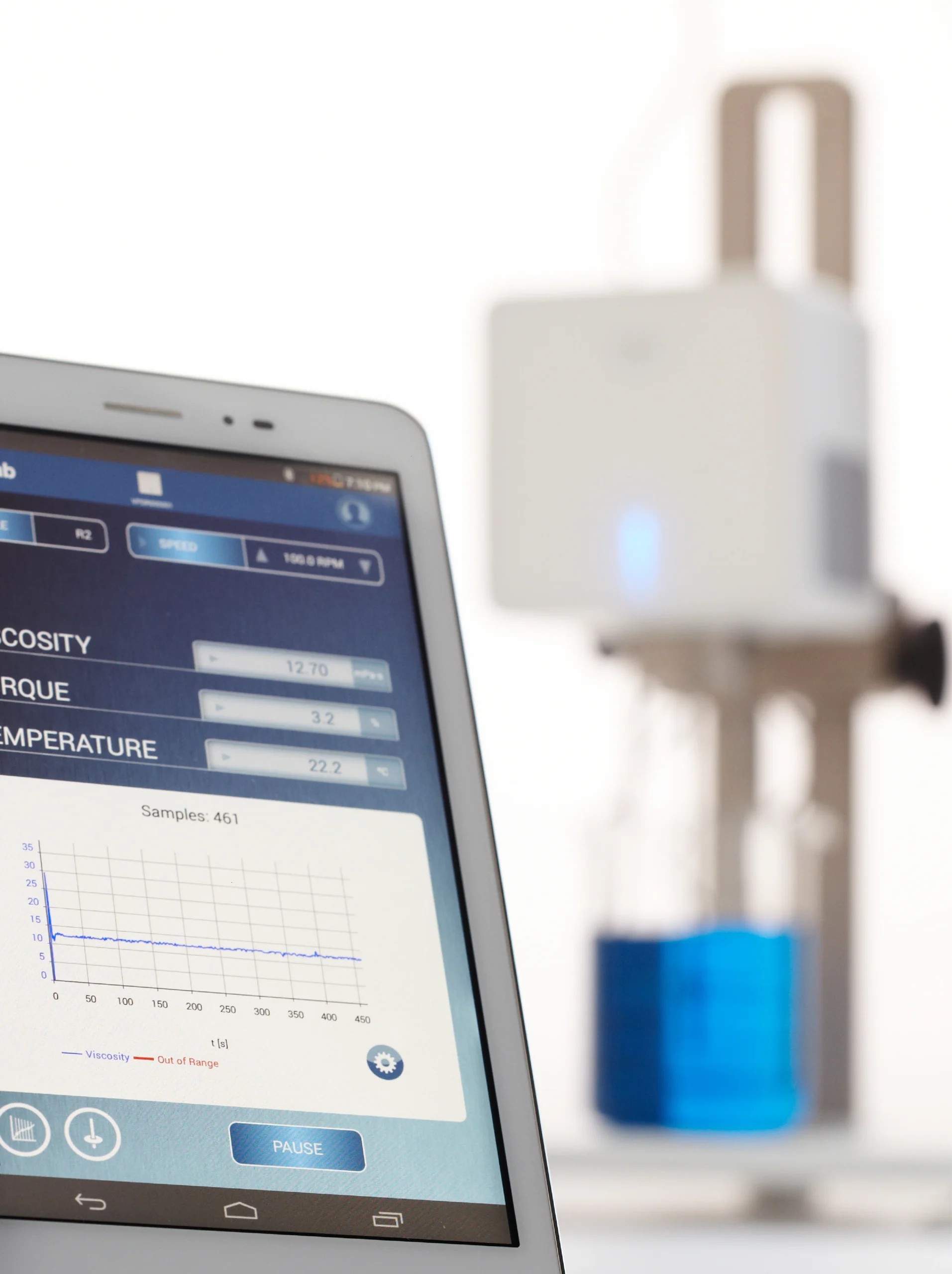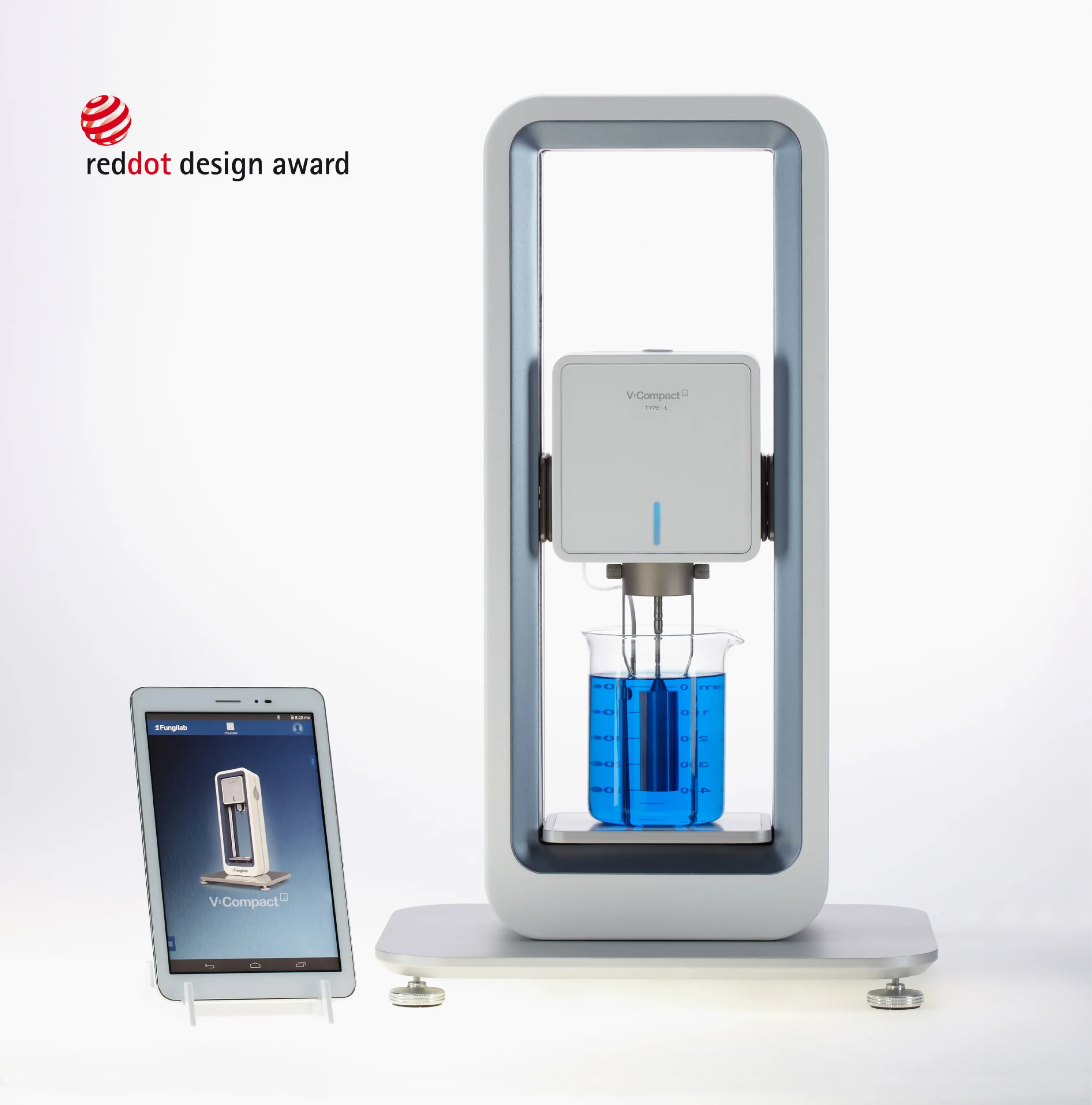 The V-Compact is a high-performance rotational viscometer that measures the flow resistance of fluids. In contrast to conventional models, the device has a digital interface and is controlled wirelessly via an app. This newly developed software provides full functionality and control over the entire instrument; all input settings, functions and parameters can be accessed on mobile devices like smartphones or tablet PCs that support the application. This allows authorised laboratory staff to remotely access the test data from anywhere.
